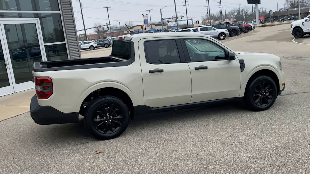 Elevate your driving experience with the Maverick XLT's impressive list of premium features. Enjoy the convenience of Remote Start, the comfort of a Soft Vinyl Wrapped Heated Steering Wheel, and the versatility of a 400W Inverter with USB Console Rear. The Black Appearance Package adds a bold, distinctive look with its Painted Mirrors, Black Interior Accents, and Unique Machined-Face Ebony Aluminum Wheels.